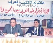 في ليلة مزدهية عقد منتدى المثقف العربي لقاؤه الرابع والثلاثين وسط حشد من رجال الفكر والأدب والثقافة والإعلام وأمضاء البعثات الدبلوماسية العربية في مصر ، جاء عنوان اللقاء هذه المرة بعيداً عن الثقافة، لكنه قريب من واقع الحياة العربية المعاصرة، فقد تناول اللقاء: إشكاليات الإدارة في الوطن العربي وسبل حلها، تحدث في اللقاء الأستاذ الدكتور محمد إبراهيم التويجرى الأمين العام للمنظمة العربية للتنمية الإدارية، والأستاذ الدكتور عطية حسين رئيس قسم الإدارة بجامعة القاهرة.