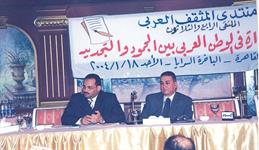 بعد عدة لقاءات عقدت بالجامعة العربية تارة ونقابة الصحفيين تارة أخرى عاد منتدى المثقف العربي للانعقاد بالباخرة السرايا بشاطئ النيل بالزمالك حيث توافد مساء الأحد 18/1/2004م، رواد المنتدى من المفكرين والأدباء والنخبة الثقافية ورجال السلك الدبلوماسي والصحفيين ورجال الإعلام.