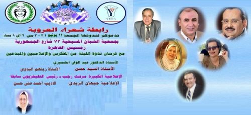 الدكتور عبدالولي الشميري يشارك بفاعلية رابطة شعراء العروبة يوم الجمعة الموافق 11 يونية 2021م في الساعة 6 مساء بجمعية الشبان المسيحية - 72 شارع الجمهورية - رمسيس - القاهرة ومع باقة من المفكرين والشعراء