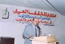 ثم كان اللقاء مع شاعر حلب الشهباء وشاعر رابطة الأدب الإسلامي الدكتور عبد القدوس أبو صالح الذي قال : أنا سعيد جداً في رحاب منتدى المثقف العربي الحاشد تحت رعاية هذا الرجل البطل راعي المنتدى الذي لا أدرى بأية ألقاب أتوجه إليه لقب السفير أم لقب الشاعر والأديب، وإنني لأحييه لإقامته هذا الصرح العظيم الذي يجمع الأمة كلها، ونحن في خضم معركة المصير، لنجتمع على ما نتفق عليه، ويعذر بعضنا بعضا فيما نختلف فيه، أمام العدو المشترك الذي يتربص بنا جميعاً، كما لا يخفى عليكم. وبالنسبة للشعر فأعترف أنني شاعر مقل، إلى أن أتتني قصيدة من الشاعر الكبير عمر بهاء الدين الأميري وهو بالمستشفي في غرفة العناية المركزة فهزتني قصيدته والتي مطلعها: